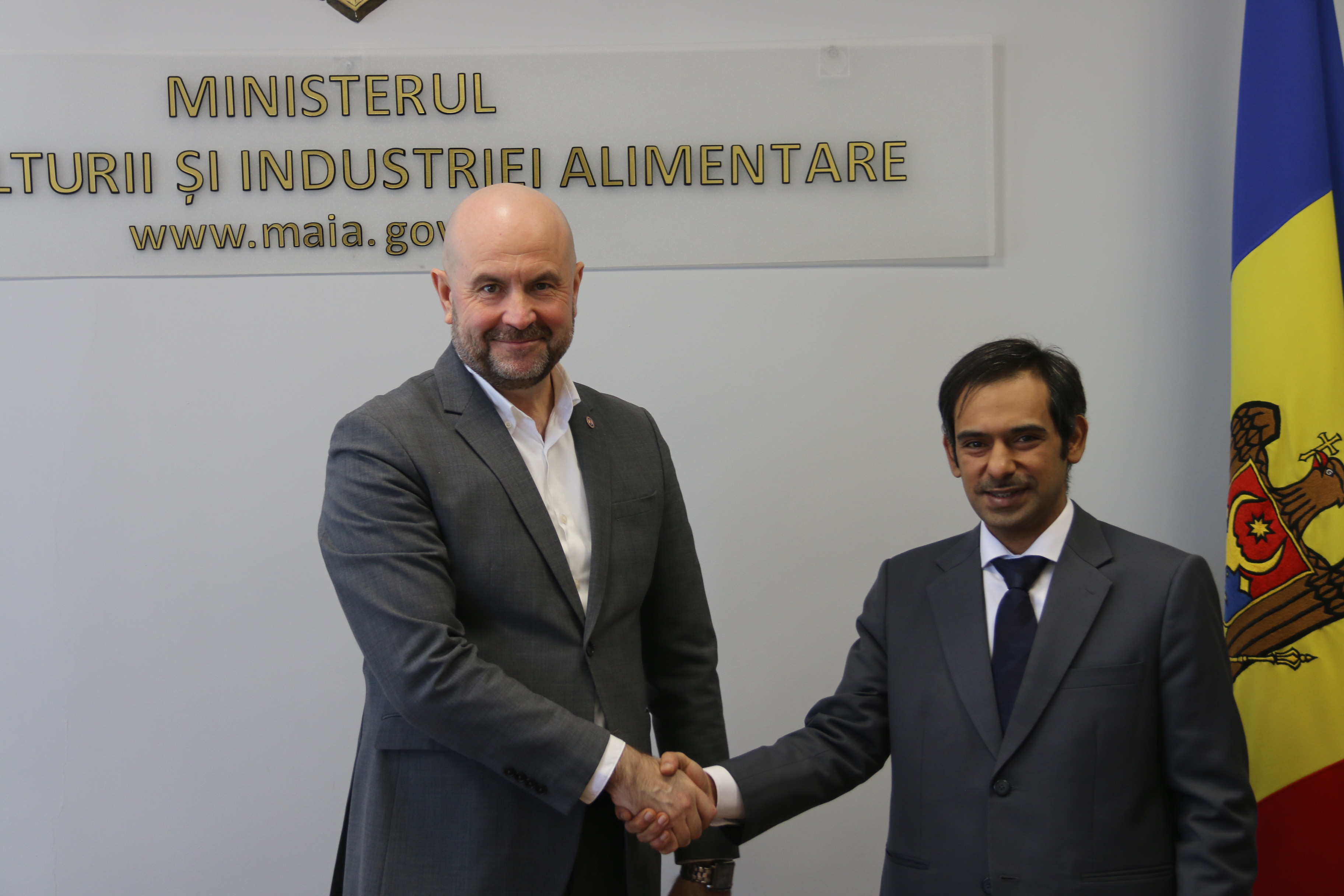30 ianuarie 2023, Chișinău - Ministrul Agriculturii și Industriei Alimentare Vladimir BOLEA a avut, astăzi, o întrevedere cu Însărcinatul cu afaceri al Ambasadei Statului Qatar în Republica Moldova, Hamad Khalid Alsheaibi, în cadrul căreia au fost discutate perspectivele de dezvoltare a cooperării bilaterale în sectorul agricol și de extindere a schimburilor comerciale moldo-qatariene.